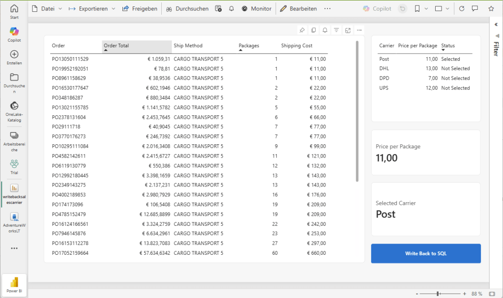 PowerBI is great for data analysis and visualization. It also supports What-If simulations, but lacks the ability to save analysis results in a structured way. In combination with Fabric User Data Functions you can implement a simple Write-Back to a data source in Fabric (e.g. database, lakehouse).