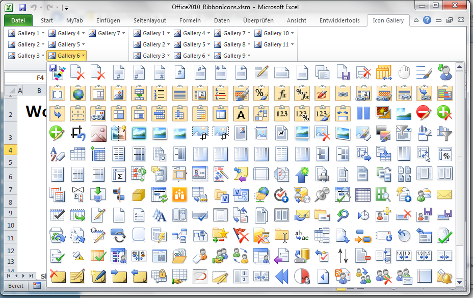 This free Excel VBA Add-in uses the Ribbon Commander framework to display dynamically built-in imageMSO icons or imported images in Excel’s Ribbon (in buttons or gallery items). What you see, is what you get in your Ribbon !