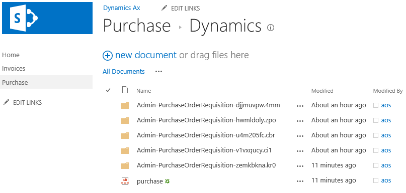 A typical requirement is to publish documents like Invoice, Purchase Order, etc. to an DMS system like SharePoint. However, in Dynamics AX 2012 and lower there is no built-in functionality to publish these documents to SharePoint. But this requirement can easily be achieved without coding.