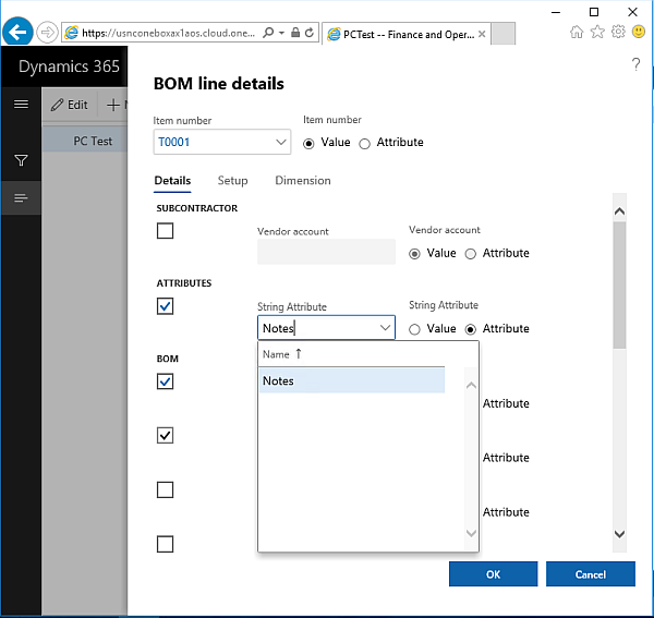 - Open the BOM line details and assign the notes attribute to the string attribute 1