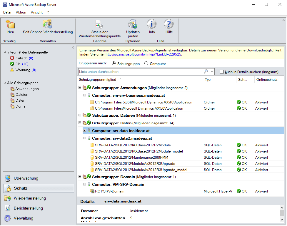 Taking backups is crucial. I prefer to use the Azure cloud for storing backups. In case a disaster strikes on-premises, the data is at least save in the cloud. Microsoft is offering a great solution with Azure Backup. For taking simple file-based backups you only need the recovery agent installed on the source server. For taking more complex backups e.g. from SQL Server and HyperV the Azure Backup Server is required.