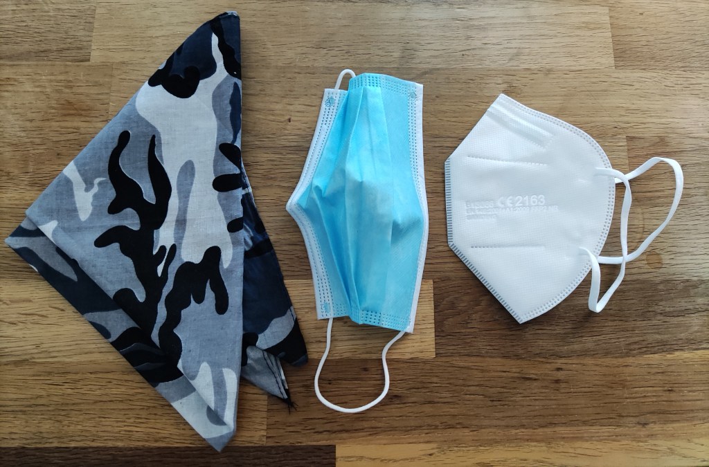 Masks: Scarf Early 2020 – Face-Mask Mid / End 2020 – FFP2 2021