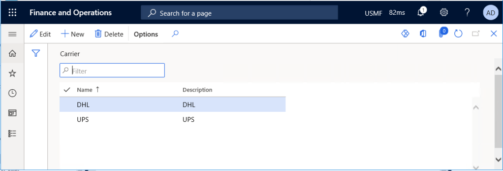 Carrier in Dynamics 365 Finance and Supply Chain Management
