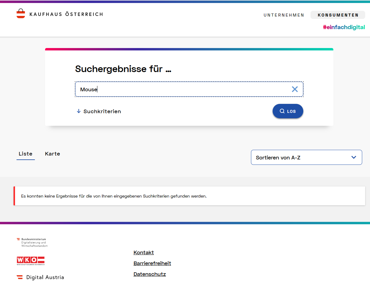 This week was an IT disgrace for the Austrian government. Last week was Black-Friday week and Cyber Monday at Amazon. In order to strengthen Austrian companies the Ministry for Digital and Economic affairs together with the Austria Commerce Chamber decided invest 700.000€ to develop and launch an Austrian Online Shop. This week the “Kaufhaus Ă–sterreich” / “Store Austria” was launched and failed immediately. Because it is nothing more than a link list with a not functional search. The search does not index the products from the vendors but only their company name and description. For Example, if you search for a mouse no results are returned because no registered vendor has “mouse” in their company name đŸ¤£