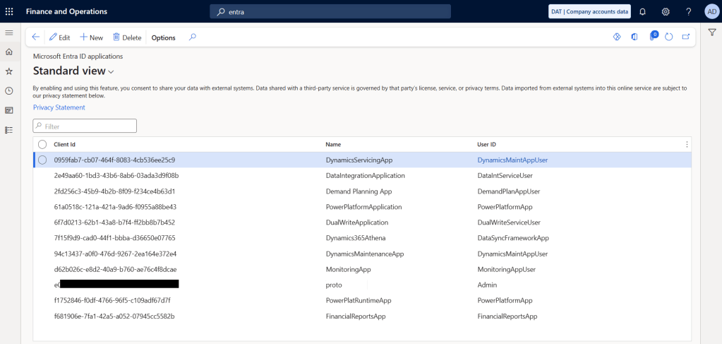 Finally to avoid any additional problems I’ve also create a new record in Dynamics 365 Finance Supply Chain at the EntraID Applications page.