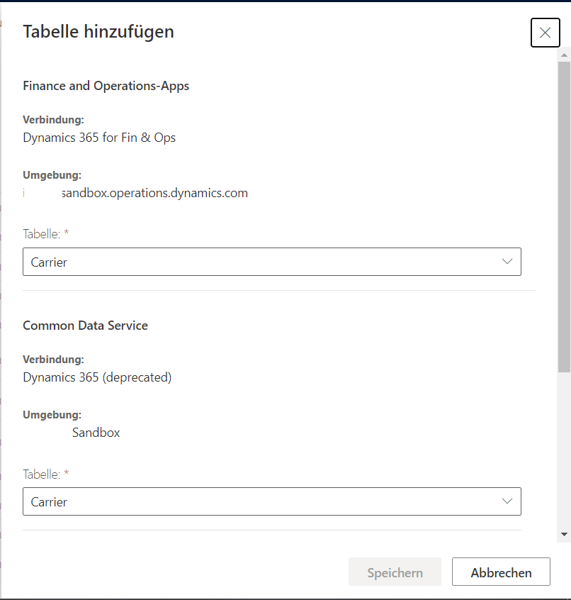 Check if the synchronization was successful. Open https://make.powerapps.com in a browser and switch to your target environment. At the left menu go to Data > Tables. Click on the Carrier table and switch to the Data tab. You should see the same carrier like in Dynamics 365 Finance.