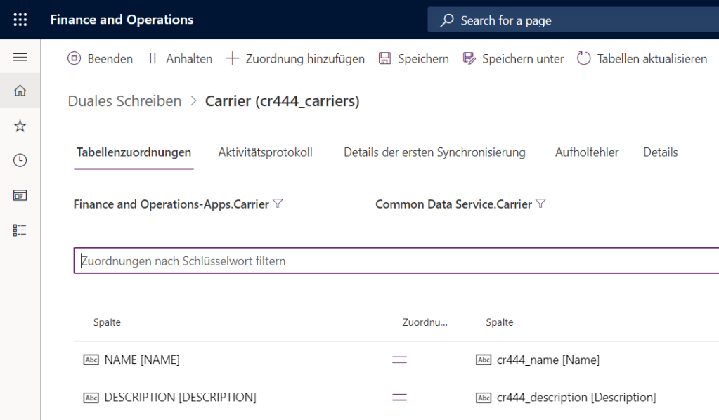 In Dynamics 365 Finance open the Data Management Workspace and go to Dual Write. Create a new table mapping. Map the Carrier entity from Dynamics 365 FO with the Carrier table form the Dataverse.