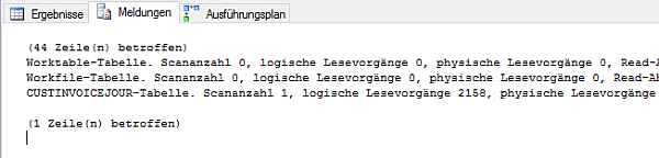 When executing this query against a Dynamics AX Contoso Demo database, 2158 logical reads were required.