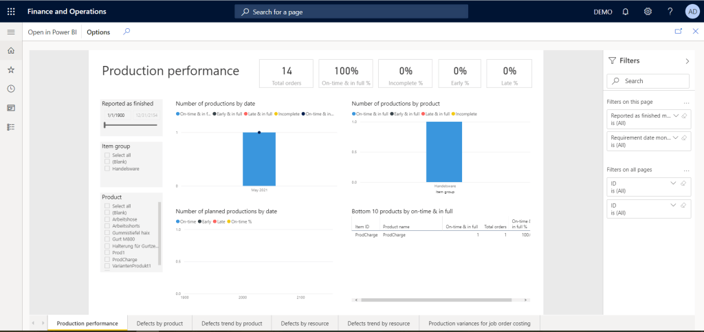 Production Performance is part of Dynamics 365 Finance & SCM and directly connects to the entity store (aka. AxDW)